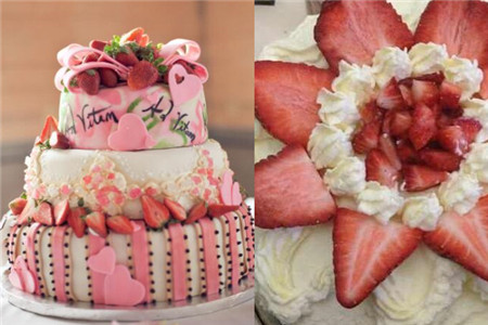 为了让蛋糕做出来更加的好看,我们可以再拿几个草莓将它切成了两半,把它们放在蛋糕上面,然后再用彩色的奶油做一点花型就可以了。既美味又漂亮的草莓蛋糕就做好了,其实这种草莓蛋糕和蛋糕店里面卖的都是差不多的,只是蛋糕店里面的更加精致而已。