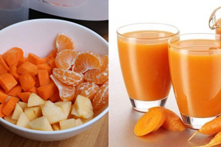 2、橘香甜汁。这款果汁以橘子和胡萝卜为主要材料,橘子里有充足的维A和维C,有抗氧化的作用;胡萝卜中亦含有维A、钙、铁等营养元素;两者都有对视力有益的功效。它既有橘子的酸甜清爽,又有胡萝卜的清新香甜,搭配在一起实为佳品。
