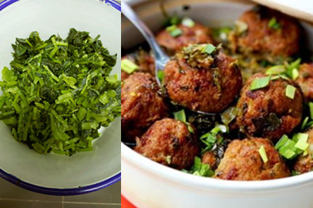 8、在煮锅中倒入些许的清水,水煮开冒泡后。把之前炸好的丸子加入锅中,汤汁沸腾后,转为小火慢慢煮。这时候再往里加入雪里蕻,汤汁再次烧开后,便可出锅食用。