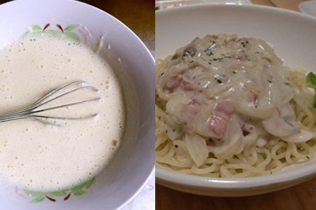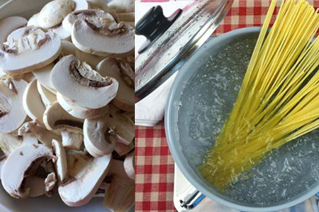 1、准备的食材有意大利、蘑菇、培根、淡奶油、牛奶。