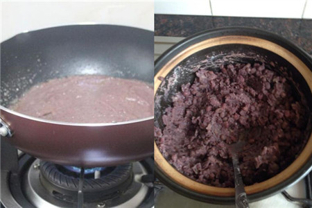 翻炒到红豆完全吸收糖水之后即可关火。然后我们将红豆盛盘,用手或者是勺子,将一些没有被翻炒成泥的红豆捣碎。当所有的红豆都已经成为红豆泥的时候,我们的红豆沙就基本制作完成,将红豆沙放入冰箱冷藏,在我们想要吃面包或者是蛋糕的时候,就可以将冰箱里面的红豆沙拿出来当作面包馅吃,非常的美味可口,并且对我们的身体来说也有一定的好处。