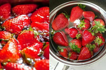 草莓的外表有许许多多的小坑,当喷洒农药的时候这些小坑就是农药很好的依附点,所以清洗之前要把草莓浸泡,先对这些化学药物进行第一次的清除。很多人认为草莓一上来就用手边冲边洗,然后直接便可食用,但这样处理的草莓很大程度上仍然含有大部分的农药,吃进肚中很不好,还是一步一步按部就班的清洗草莓为上。