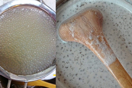 这种做法是不对的,西米用冷水浸泡会变成糊状了,因为它本身是淀粉做成的。西米仅仅需要事先清洗一下就可以,然后在奶锅中倒入纯牛奶,一份西米两份牛奶的比例就可以。加热后把沥干水的西米倒进去,西米其实是一种很容易熟的食品,不用煮太长时间,否则容易融化。接着就可以把香梨放进去,搅拌一下温火烹煮,煮的过程中香梨就会煮软。