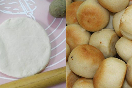 第四,取出发酵好的面团揉成表面光滑的状态,分成大一适中的几份,另一边将豆泥也这么分。将分成份的豆泥包入小面团中,皮薄馅儿厚,收口向下放入烤盘。烤15min左右即可。