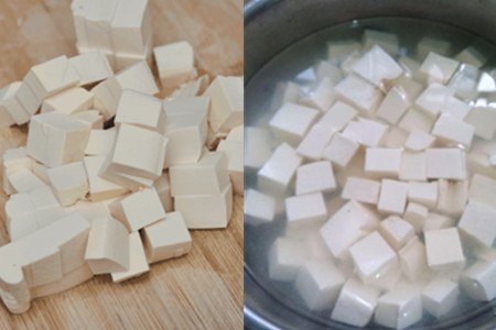 首先,我们先应该准备一块豆腐,然后将它切成块状备用。接下来,我们需要在锅里面倒入适量的水,同时再将我们事先准备好的豆腐倒入锅中煮制。在煮制的过程中,我们可以在里面加一些盐,这样可以防止它煮坏。