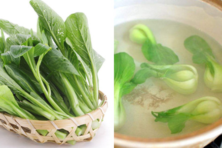 虽然这种食材比较容易熟,但是在炒制的时候,我们这样做可以使它的色泽看起来更新鲜。我们需要将焯好的香菇切成片状,同时再将焯好的菜心切成段状备用。