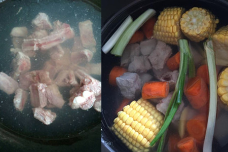 然后准备一个炖煮锅,如果想汤汁更加香浓,可以买一个浓汤宝。锅里放入清水,然后点火加热,把浓汤宝放进去,慢慢的浓汤宝就会融化在清水中。这时候就可以把排骨和玉米放进去,加一些精盐就可以了。排骨炖玉米不需要放太多调料否则会非常影响这道美食的口味,总的来说,还是以清淡为主。