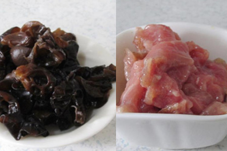 木耳提前用清水泡发,清洗干净,撕成小朵。瘦肉洗净切成薄片,青椒洗净掰成小块。