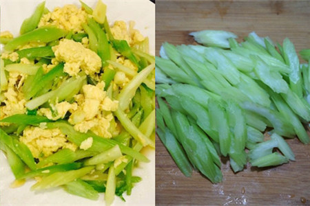 第一种是芹菜炒鸡蛋。需要准备的食材有两百五十克芹菜、三枚鸡蛋、适量花生油、适量食盐、三个小辣椒、少量料酒、少量糖、少量葱、花椒以及香油。