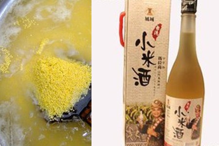 首先,将小米在清水中浸泡一夜。沥干水,平整倒在炊布上,放入锅中隔水蒸熟。用水把酒曲融化开来,充分搅拌均匀。小米蒸熟后,晾到室温状态,加入酒曲饼,用铲子充分搅拌,然后在小米饭中间戳个洞,把酒曲水倒进去。盖上锅盖,放置两到三天,让其充分发酵,等待小米酒出来就可以了。