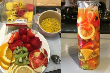 将水果加糖搅拌好,使水果上的甜味均匀,然后和冰块一起,一层水果丁,一层冰块的放进准备好的容器中,摆满以后倒入红茶。顶上点缀上几片柠檬片,鲜果茶就做好了。制作简单,而且非常消暑,在夏天的时候不妨用鲜果茶代替奶茶来当下午茶吧,不仅美味解暑,还能美白皮肤,一举两得!