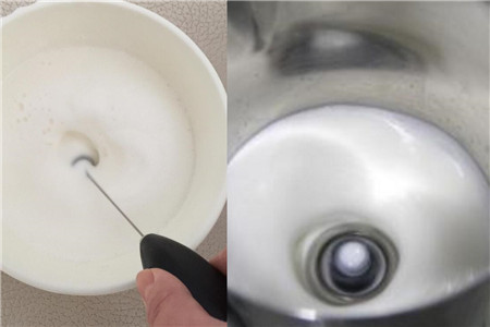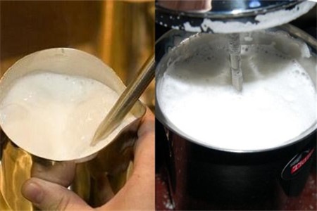 首先我们需要将牛奶进行冷藏,冷藏的牛奶需要保持在5摄氏度左右的温度,这样才可以让牛奶的香醇口感体现出来。冷藏好之后的牛奶,我们将其倒入奶缸当中,可以根据个人当时所制作的分量来决定牛奶的分量。然后将蒸汽棒插入牛奶当中,让蒸汽棒开始运作。需要注意的是,蒸汽棒需要跟牛奶杯底保持一定的距离,这样才可以让牛奶更好的起泡。