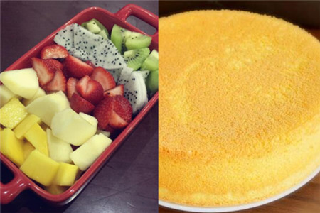 今天我们先来做一个水果拼盘蛋糕,这种蛋糕上面的水果就像花朵一样美丽的绽放。其实我们如果想要做许多好看的水果拼盘蛋糕,我们选用的水果尽量的选择颜色比较鲜艳的水果,比如说黄色的芒果以及红心的火龙果等等都是可以的。