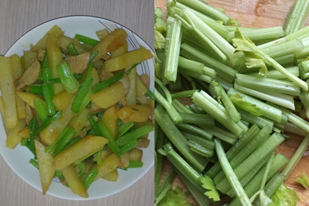 待土豆已经半熟之后,加入芹菜,翻炒片刻之后,加入盐,就可以了。