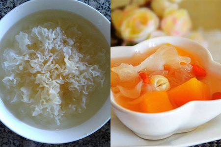 第三种吃法是银耳炖木瓜。需要准备的食材有十五克银耳、一个木瓜、十克北杏、十二克南杏、适量冰糖。
