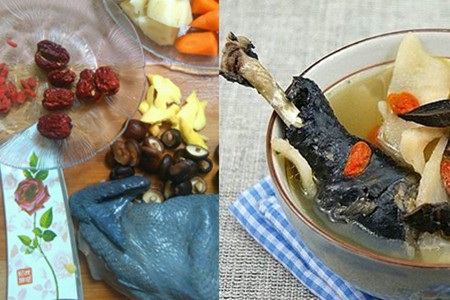 1、甜萝卜炖乌鸡。清甜的白萝卜,加上嫩滑的乌鸡,两者组合在一起的汤汁口味清新,一点儿也没有平常滋补鸡汤的油腻和厚重感。