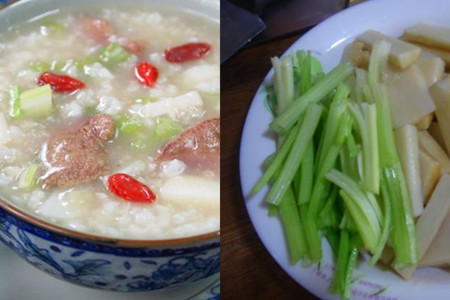 2、淮山芹菜猪肝粥。