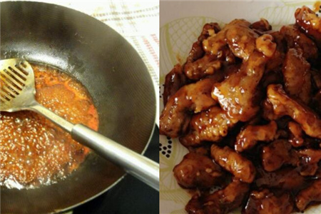 酸甜汁是糖醋里脊这道菜另外一个关键部分,一般饭店中多数是用番茄酱和白醋等多种调味料一起进行调配的。不过如果是家常版本的话就不需要如此的讲解了,就米醋和白糖两样就足够了,虽然颜值上要差一些,口感还是不错的。