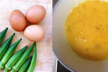 先将买回来的秋葵进行清洗,鸡蛋打成蛋液。