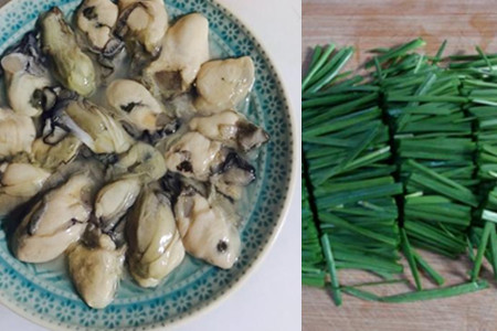 1、准备的食材非常容易获取,仅仅需要牡蛎、韭菜、淀粉、芹菜、辣椒。