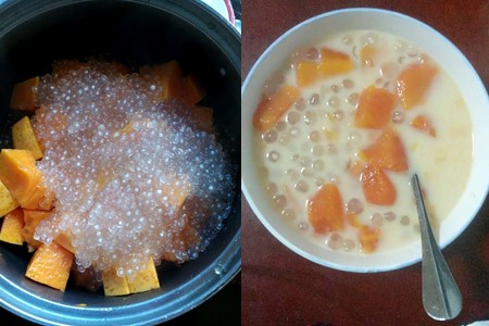 木瓜西米露是木瓜系列中比较具有代表性的甜品之一,而且木瓜和西米的结合还能治疗消化不良。木瓜西米露口感Q弹,味道香甜,适合各种年龄阶段的朋友吃,重点是做法简单,厨房杀手也能学会。把木瓜剥皮去籽切块,西米提前用水浸泡半小时。用一锅倒入适量的水或者椰浆,水开后把西米倒进去煮二十五分钟,然后把木瓜块放进去大火煮三分钟即可。