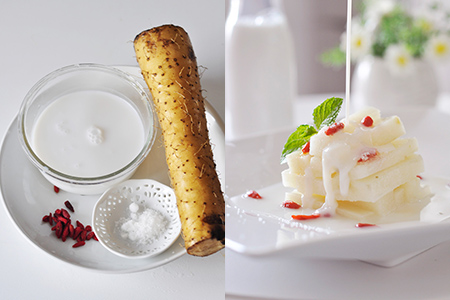 功效:山药具有滋阴养肺的功效,搭配具有生津利尿美白养颜的椰汁,不仅可以养生还可以达到美颜的效果。