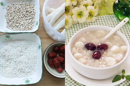 功效:山药可以补肺健脾,薏米同样对脾脏也很有好处。两种食材一起熬粥,经常食用可以让皮肤光滑细腻,对身体也很有好处。