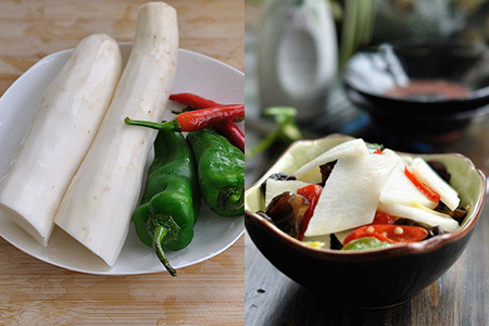 功效:健脾益肺的山药搭配润肠降血压的黑木耳,一起进行清炒也是一种不错的吃法。
