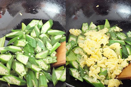 秋葵炒鸡蛋非常鲜香,口感比较清淡。吃的时候非常的滑嫩。炒制这道菜的时候要注意,高温会破坏蔬菜的营养成分,所以不要让菜在油锅中炒太久,尽量翻炒均匀,食材入味以后,就起锅,确保菜的营养没有流失太多。而且高温炒菜胆固醇比较高,不是很健康。