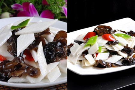 好的木耳有独特的腥香味,如果是放久了的木耳就会有霉味。选择食材的时候还是要多注意一下。山药的种类有两种,两种的质地是不一样的。一种比较粉糯,一种比较硬脆。用于炒菜的山药大多选择硬脆的,口感比较好。那种粉糯的山药一般都是用来炖肉,如果用来炒菜很容易炒成泥,不仅不好看,吃起来口感也差许多。