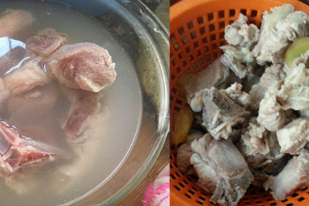 step2:对排骨进行处理,置于沸水中烫一下,以此去除浮沫。