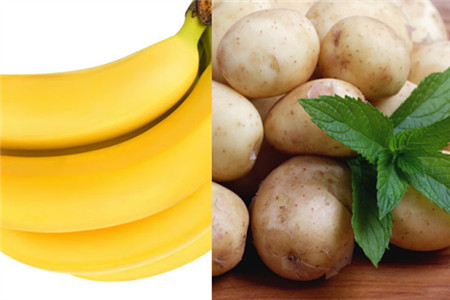 吃香蕉不能和土豆一起吃,因为一起吃会让这两种食物中的一些元素做出反应,导致产生毒素,这些毒素会轻易的积累起来之后,会让人长斑,所以爱美的人要注意了。当然,大家也不能在吃完土豆之后的15分钟吃香蕉。芋头富含维生素、蛋白质和其他元素。它有丰富的营养价值,可以保护牙齿。但不能同香蕉一起吃,否则会出现腹胀和中毒等症状。