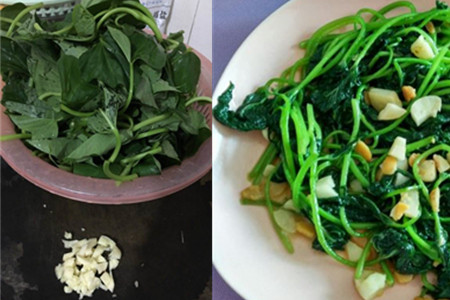 第一,事先购买好新鲜嫩绿的地瓜叶,以及蒜等材料。