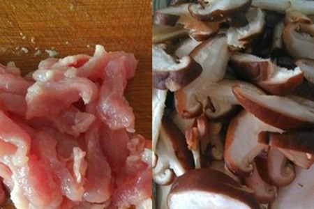 将香菇切成均匀的条状备用。将猪肉切成均匀的肉丝放入碗中,撒入淀粉和少量食盐,搅拌均匀后,放在一旁腌制一会儿。将胡萝卜清洗干净去掉外皮后,切成条状。如果喜欢玩点花样的,可以将胡萝卜切成螺纹状的长条,好看又好吃。