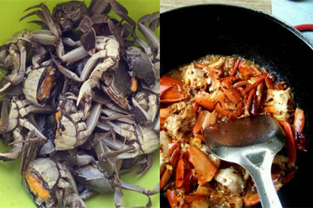 喜欢吃重口味的朋友们也可以看一下这款爆炒香辣蟹,做法也非常的简单,但是滋味丰富,浓厚。首先要准备适量的螃蟹,洗干净。然后把腹盖弄掉,螃蟹对半切开。大葱切段、大蒜拍扁、姜切片、辣椒对半切开。首先锅里放入色拉油把大葱、大蒜、姜、辣椒放进锅中炒出香味,然后把螃蟹倒入锅中炒到螃蟹稍微变红,然后倒入酱油翻炒均匀再加入适量的水。