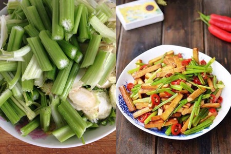 不少人家里煮芹菜的时候一般都是和肉类搭配,但其实芹菜和香干一起煮出来的味道丝毫不比和肉类差,甚至会更好。因为香干有着“素肉”之称,那如果想要减肥的朋友,不妨可以试一下。把芹菜洗干净切段,然后香干切片,剥几个蒜切片,干辣椒切段。先把干辣椒、蒜加盐放进锅内爆香,后放入切好的芹菜炒一份钟,然后再放入香干进锅里爆炒两分钟即可。