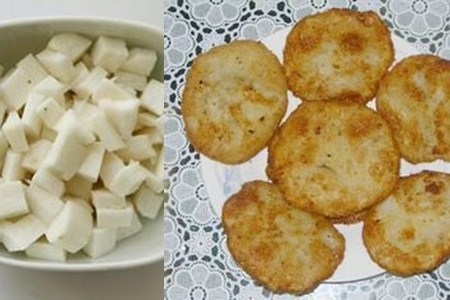 在中国的北部,天气较冷,人们喜欢吃高能量的食物。所以山药常被做成饼来吃。山药饼软糯可口并且容易有饱腹感,是早餐的不二选择。首先山药削皮、洗净,放进锅中用清水蒸熟。蒸好后,用料理机打成山药泥。在盆里加入适量的面粉、酵母粉、盐、蛋液,放入山药泥,搅拌均匀。锅中放入少许油,放入山药团,用小火煎,煎到变为金黄色即可。