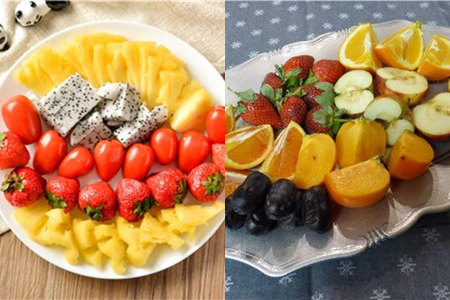第二种做法:需要准备的材料有:半只火龙果、半只苹果、沙拉酱、适量的琥珀核桃仁、几颗提子以及一只番茄、一根黄瓜。具体的做法如下:1、先将全部的水果都洗干净,然后将苹果、番茄、火龙果和黄瓜切块,而提子则是对半切开。