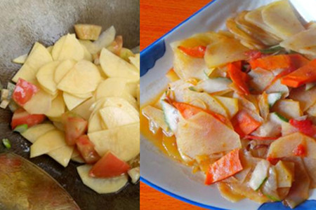 西红柿炒土豆片。