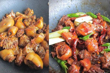 接着加入适量麻辣调料炒匀,再加入适量花椒粒和生姜翻炒。花椒和生姜炒出味之后,兑入适量开水,调至大火煮开再转为中小火,加盖烧四十分钟。四十分钟后,开盖,调入适量食盐,放入大蒜和大葱,用铲子炒匀,继续烧三分钟即可。鸭子提前用开水烫一下,这样能去掉一些腥味。麻辣调料的味道已经足够了,就不需要加其他香料了。