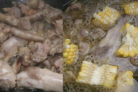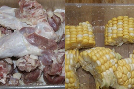 鸭子洗净剁成大小合适的块状。玉米切成小段待用。