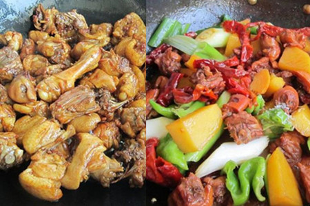 食材:鸭子1000克、土豆400克、干辣椒50克、生姜、花椒粒、草果、八角、白糖、大葱、大蒜、青辣椒、啤酒、盐、菜籽油。