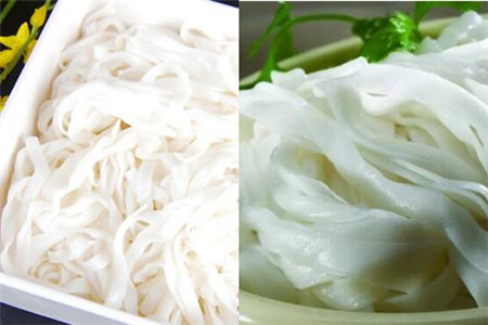 河粉是由大米制成,选用新鲜的大米打磨成细小的粉末,然后再加适量的水调成米糊,调成米糊后放入容器内,铺成薄薄的一层,放在蒸笼上蒸,蒸好之后放在一旁冷却,再将一片片的河粉切成条状的长形粉,就完成了河粉的制作。完成的河粉可以凉拌,可以煮,可以和一些其他材料炒一起炒,味道也十分不错。