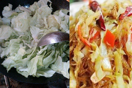 包菜丝体积开始变小时,加入精盐和蚝油,炒菜的过程中会出现很多汤汁,不要担心,把粉丝倒进去就好了,粉丝会吸收多余的汤汁,从而使干锅包菜的口感变得更好。但是也要注意火候,不要炒糊了,炒菜时间也不要过久,等粉丝熟了就可以拿出来了。