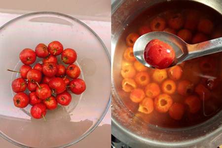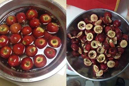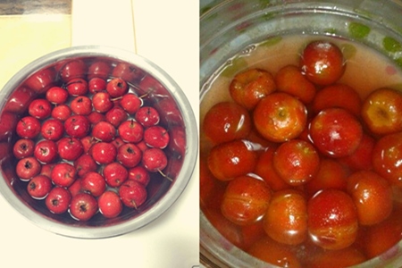 首先将购买回来的新鲜山楂放入水中浸泡半小时。