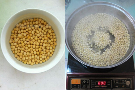 2、先将黄豆事先浸泡在清水中,浸泡至少要八个钟头。把浸泡好的黄豆捞出,再次冲洗干净后,把它放在煮锅之中。往里加入适当的清水,大火将黄豆煮熟后,便可关火。