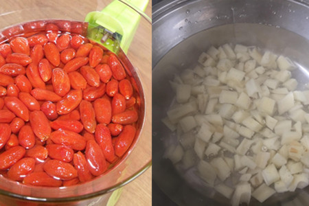3、将买回来的枸杞浸泡在冷水中,浸泡至软便可。这里的冷水不是指自来水,而是开水放凉。