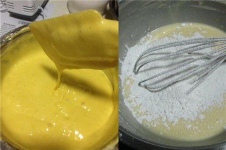 这时我们要拿出鸡蛋搅拌器使劲儿的在盆子里面搅拌,这样可以防止有一些面粉在里面还没有被打散,形成一些面粉疙瘩,如果里面的面粉疙瘩太多,做出来的鸡蛋糕也不会很好吃。这时我们还不能够将它马上倒入模具里面去烤,让它先放一会儿。