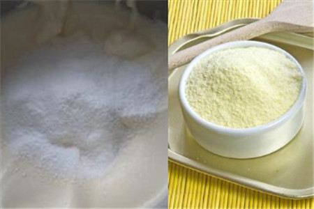 这时我们就要放入适量的奶粉和泡打粉,如果是家里面有小孩还在喝奶的,奶粉可以选用小孩子喝的那种奶粉都是可以的,如果没有的话随便买一种奶粉就可以,泡打粉不要放得太多,之所以要放入泡打粉,只是为了让鸡蛋糕做出来没有那么的死板,更加的蓬松好吃一些。