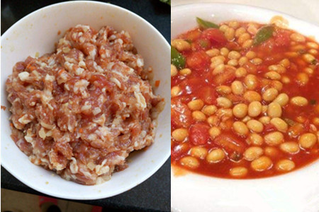 6、再往锅中加入番茄酱和白糖进行调味,盖上盖子小火继续炖煮半个钟头。汤汁开始收浓后,加入腌制好的肉末,撒上些盐进行调味。肉末熟透后,加入些水淀粉进行勾芡,撒上些葱花便可出锅食用了。